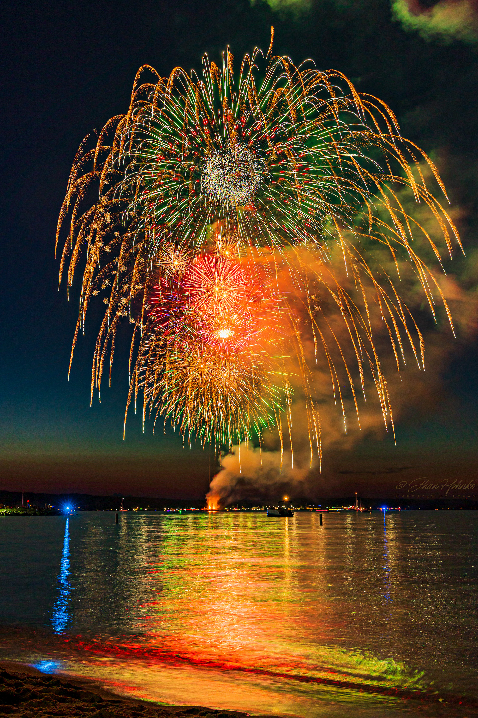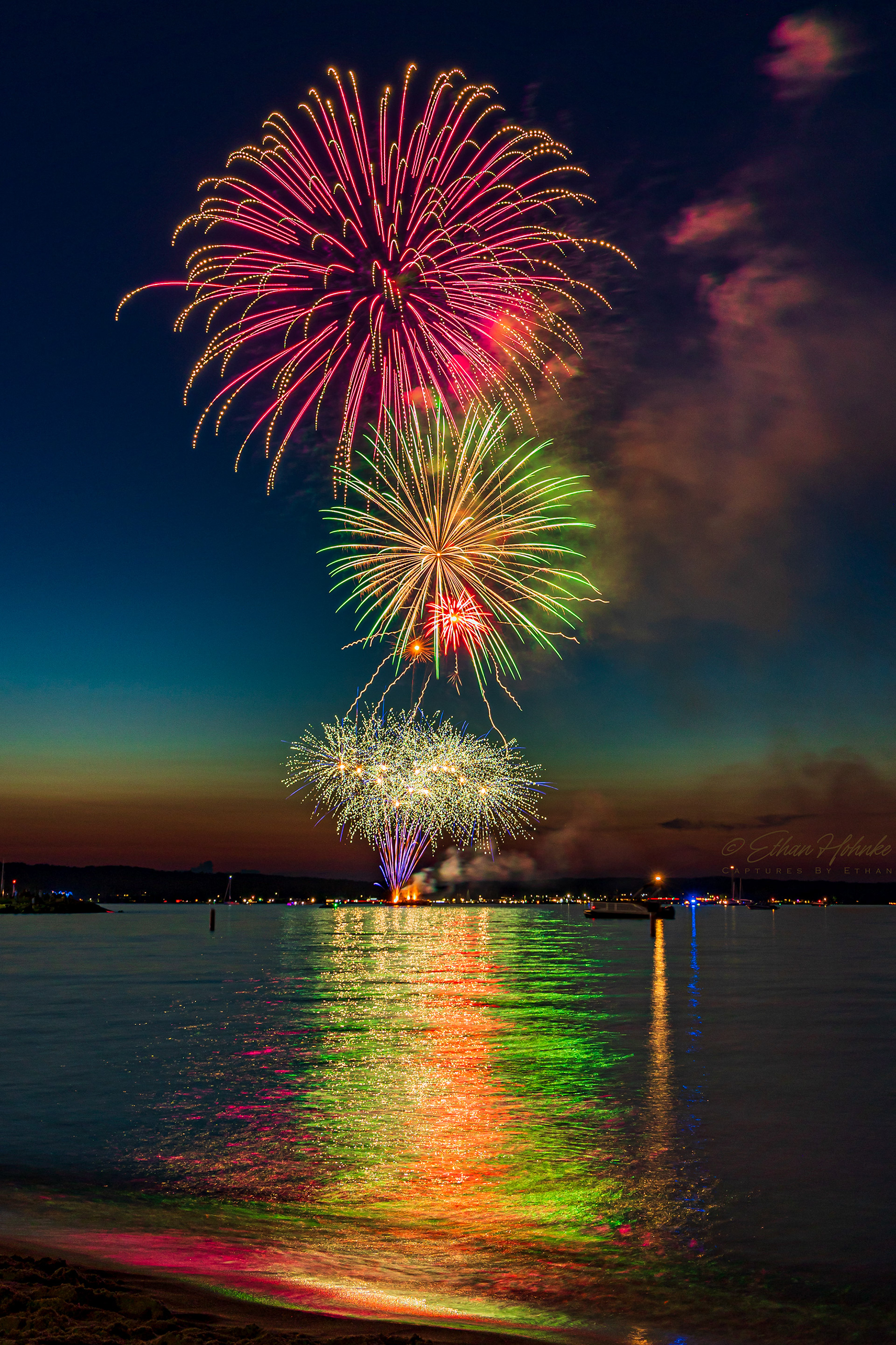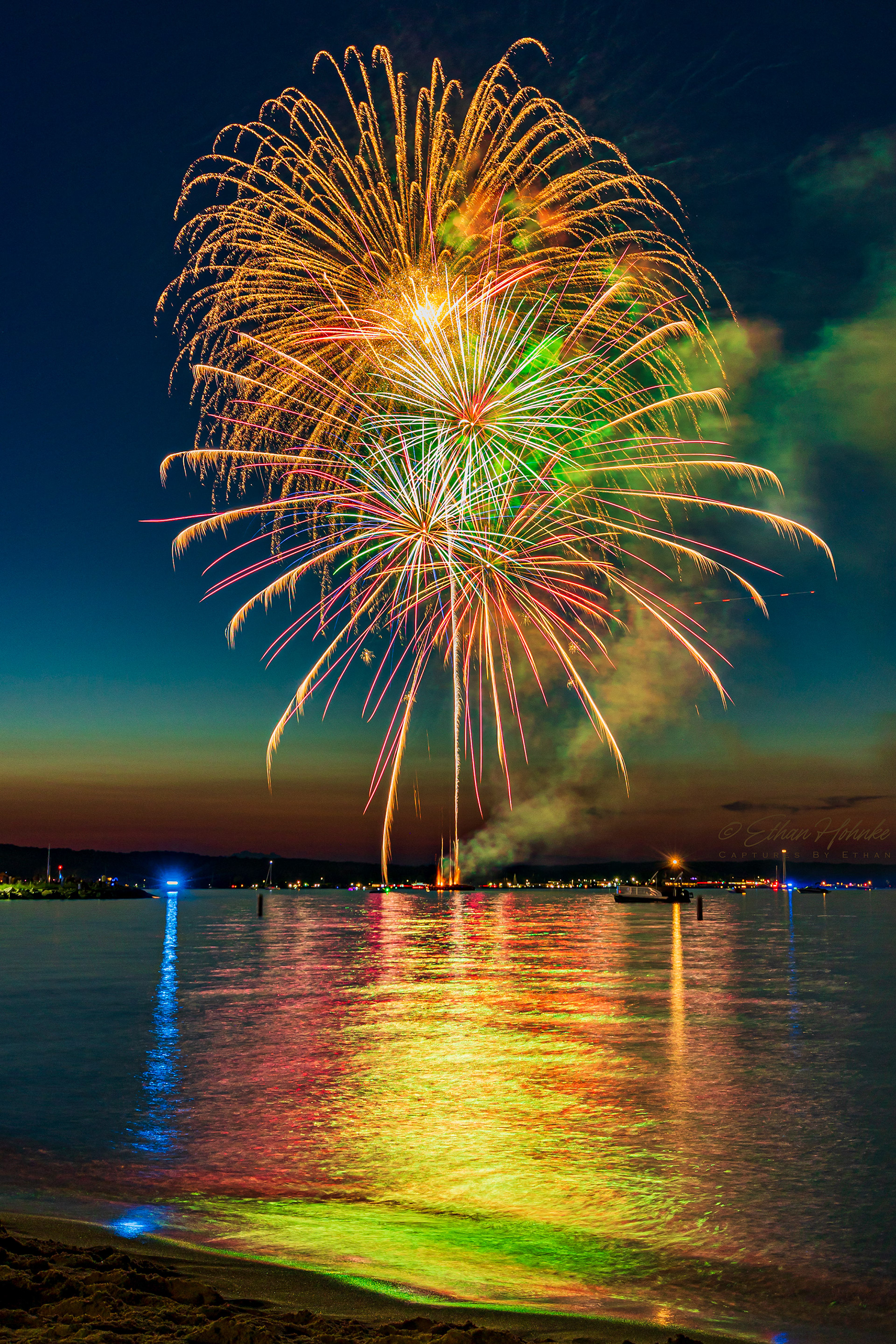 Traverse City 4th of July Fireworks 2023 | Canon R6, Canon EF 18-135mm at 29mm, Benro tripod | 4.8 second shutter speed, f/10, ISO 100