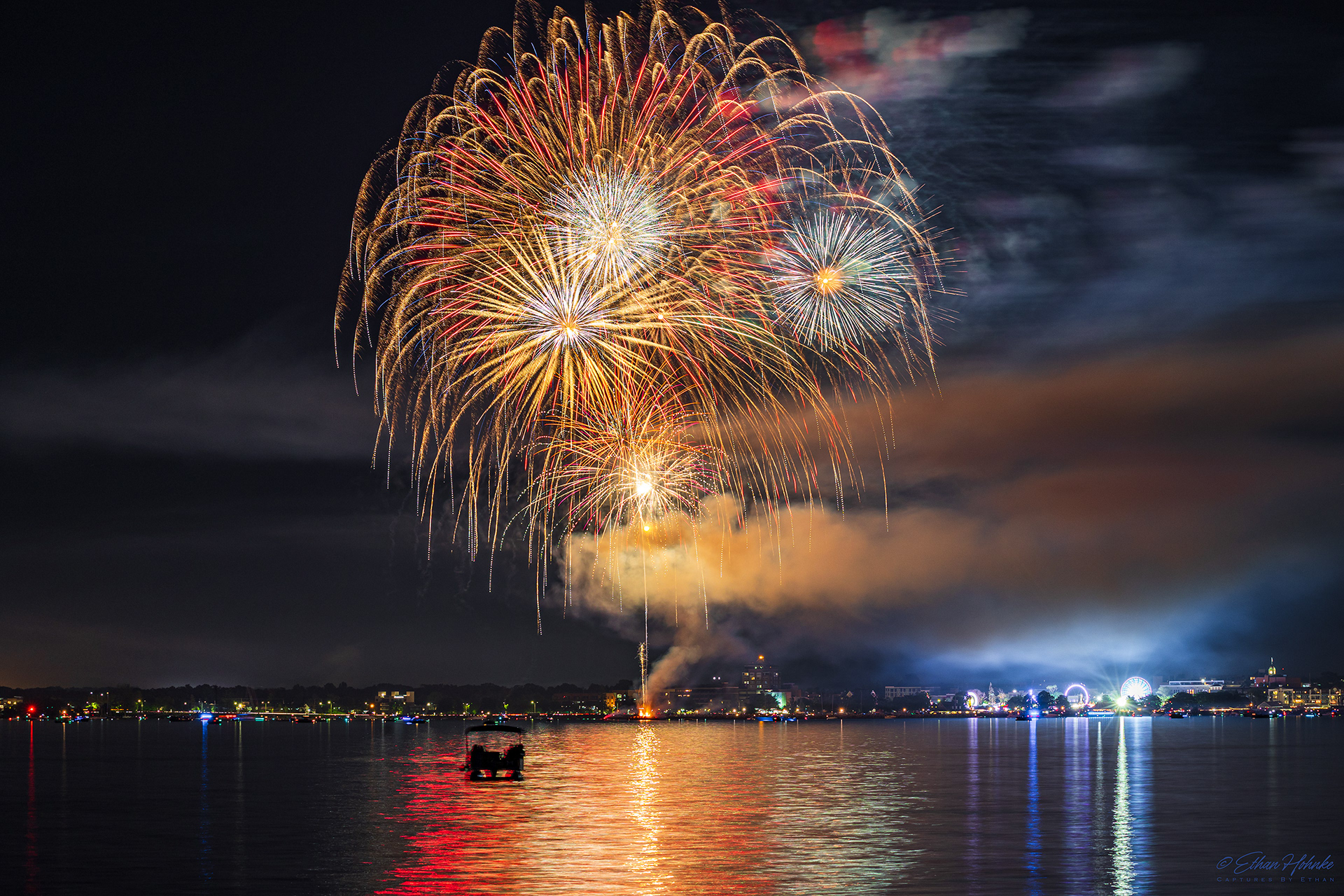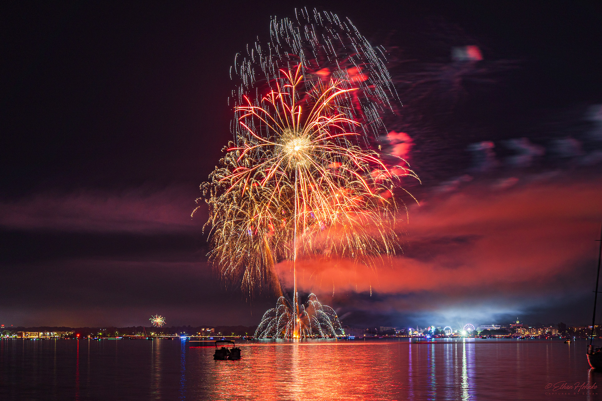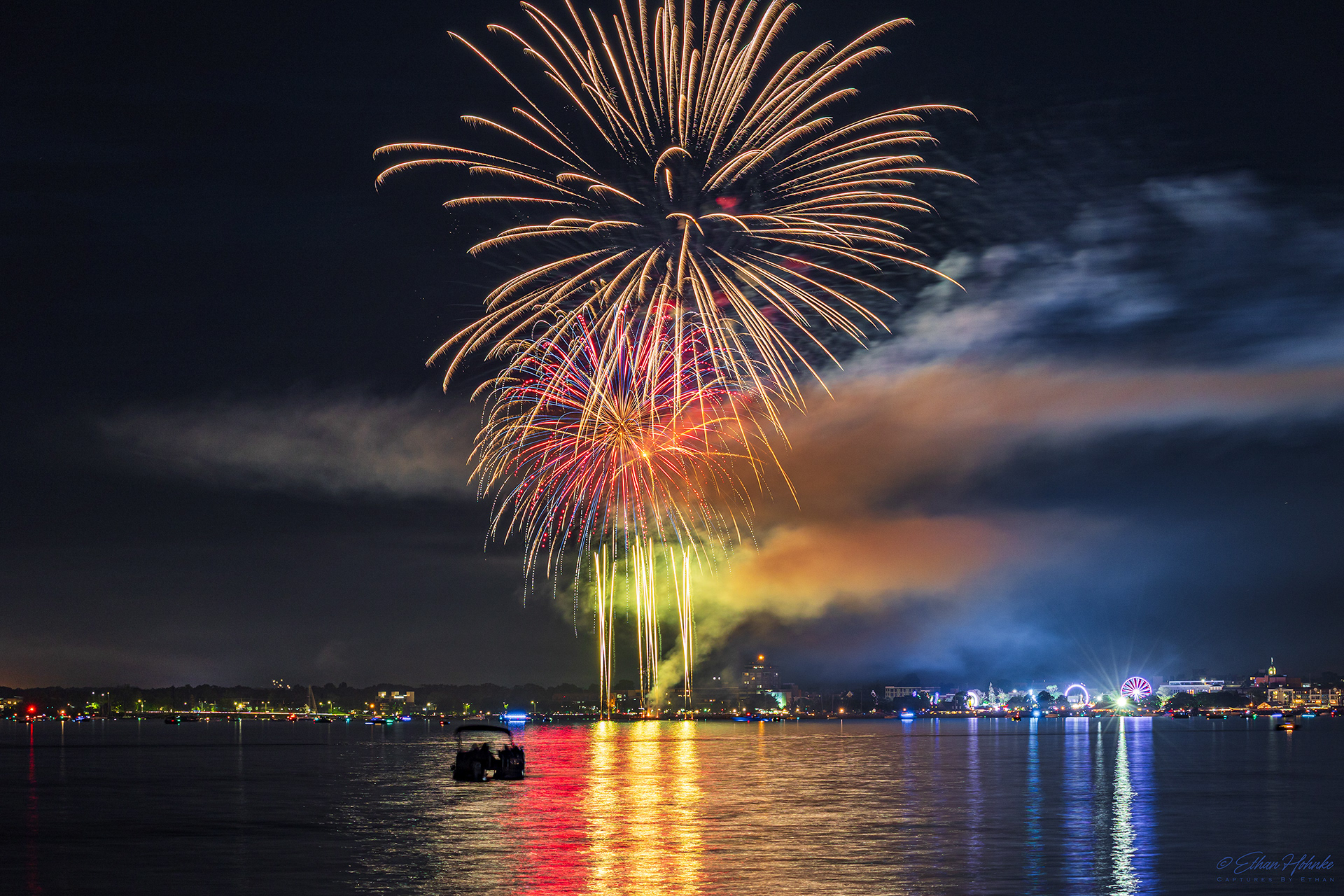 Traverse City 4th of July Fireworks 2023 | Canon R6, Canon EF 18-135mm at 29mm, Benro tripod | 4.8 second shutter speed, f/10, ISO 100