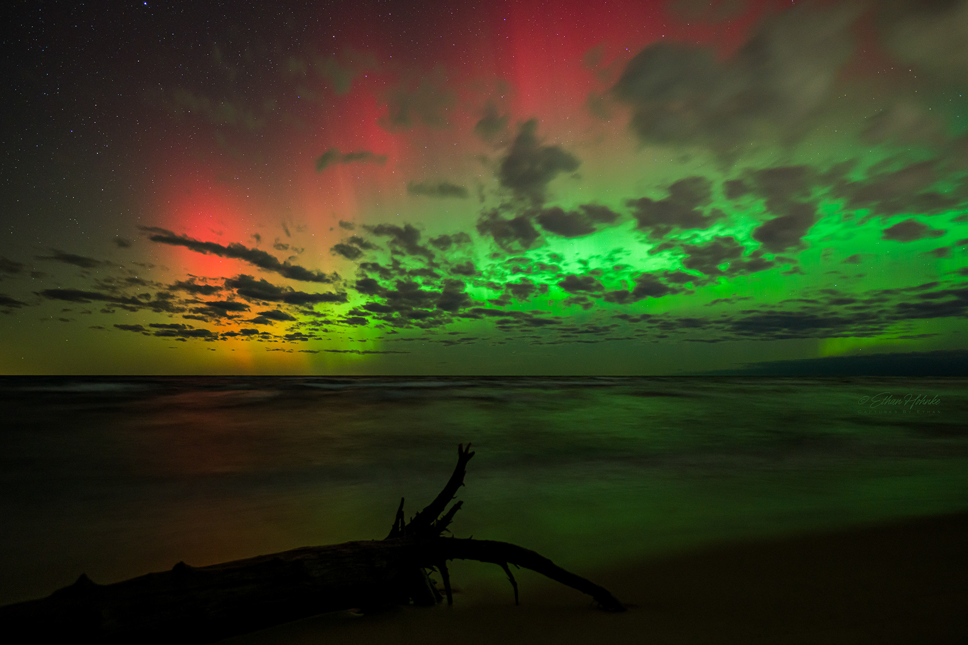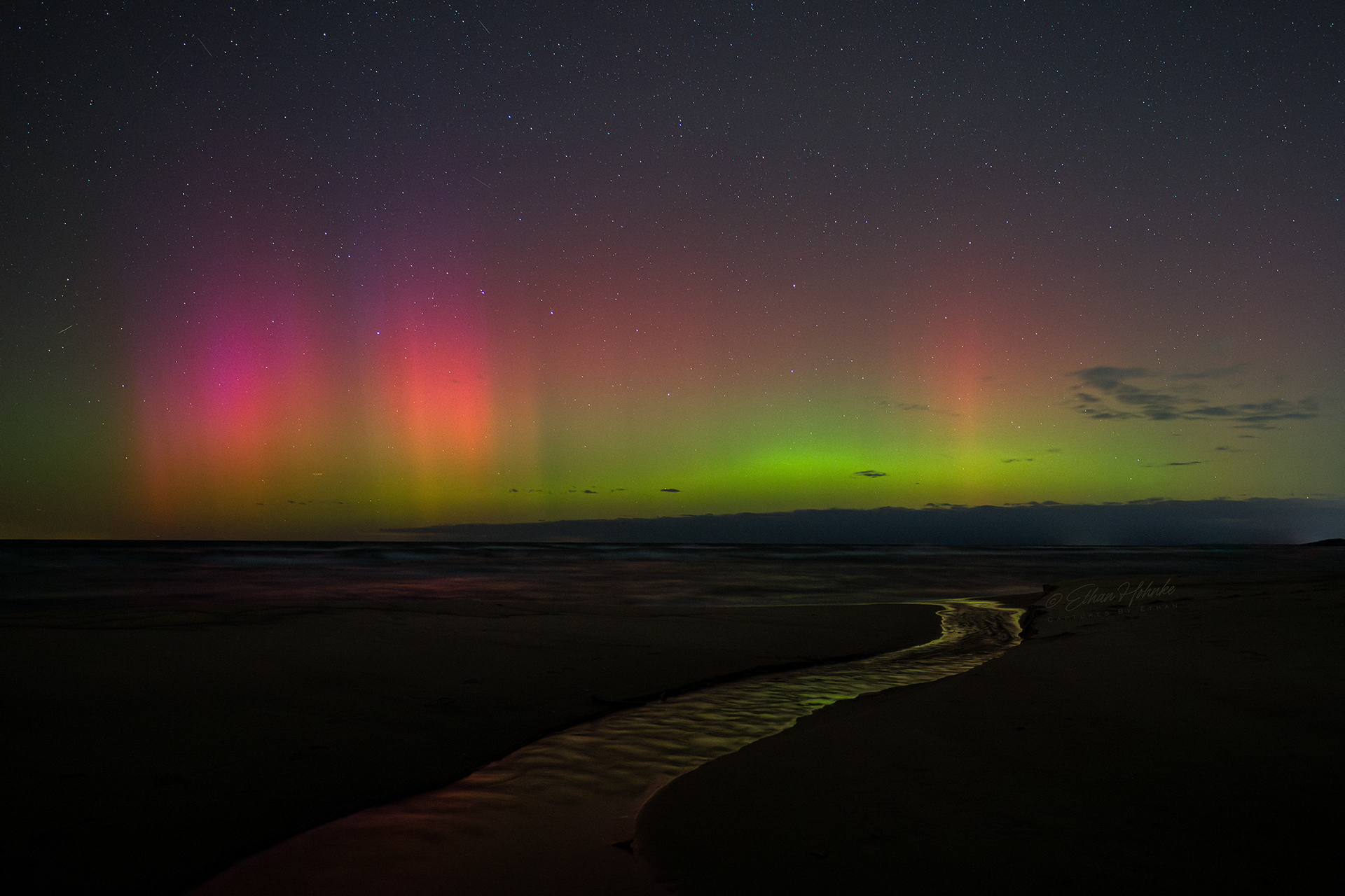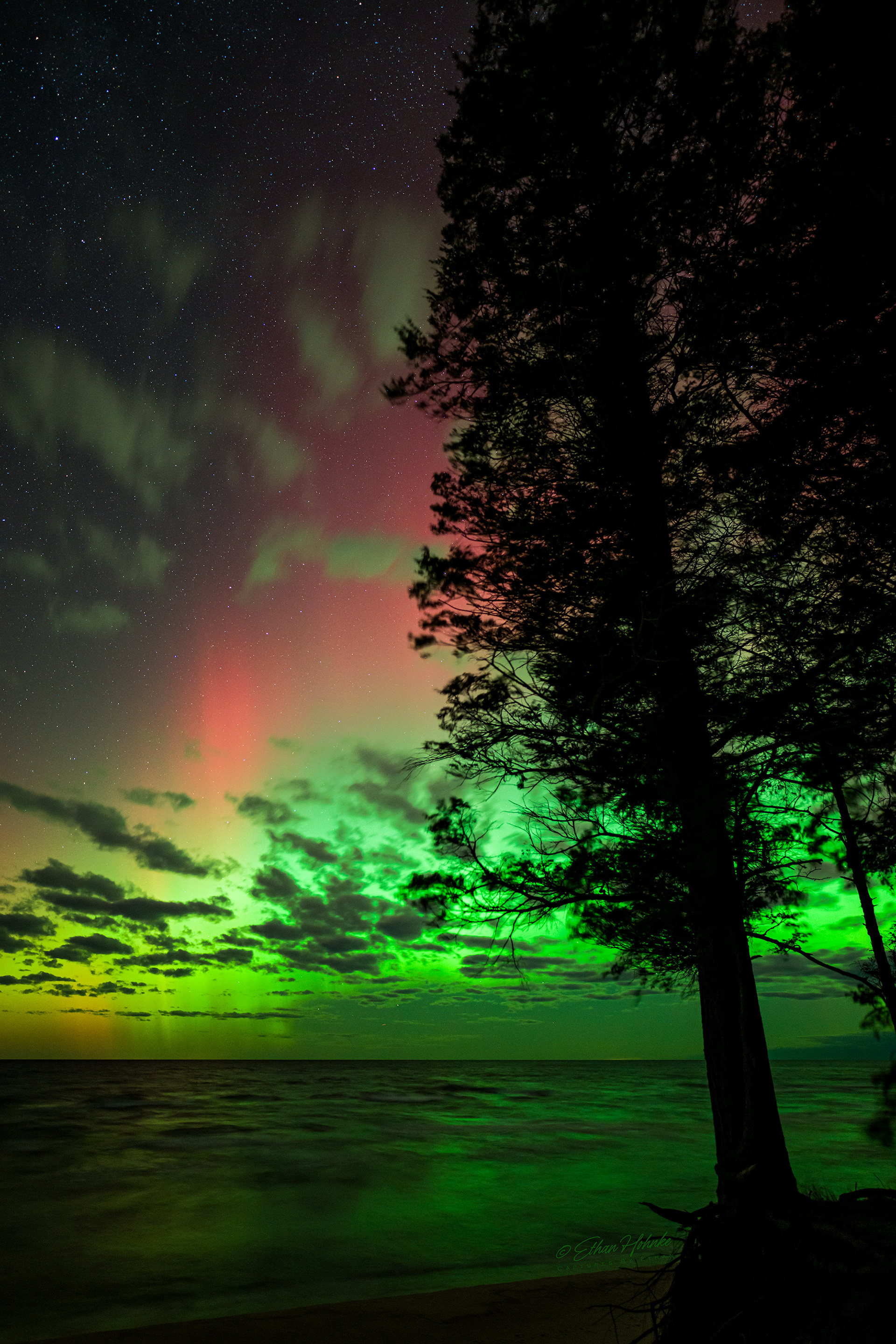 Lake Michigan Dreamscape and a Rainbow of Aurora - Magoon Creek Natural Area, Manistee County | November 12, 2025 at 10:27pm | Nikon Z8, Nikkor Z 20mm, Promaster Tripod | 6 second shutter speed, f/2, ISO 1600