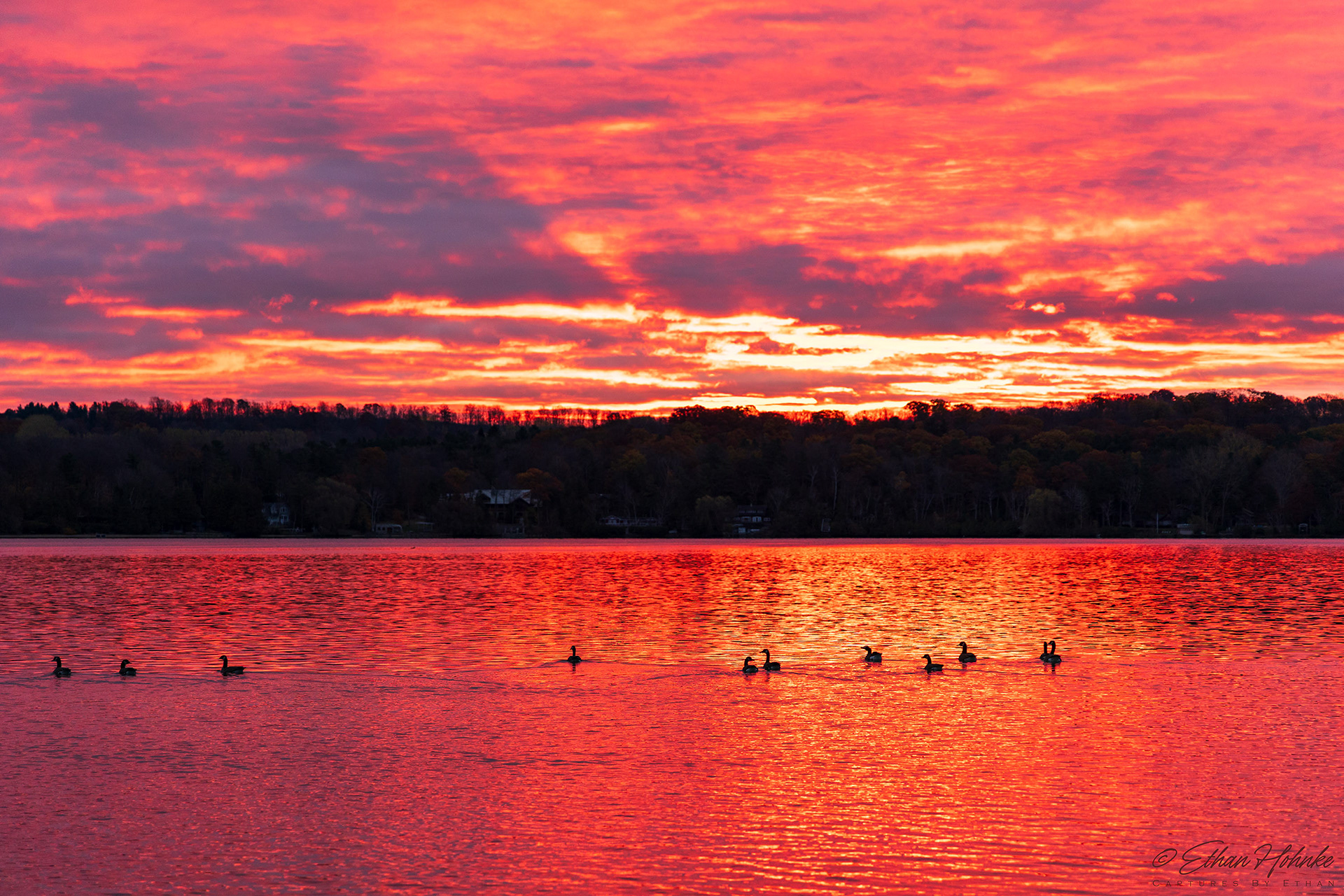 Morning Swim Sunrise over Lake Leelanau | November 11, 2023 | Canon R6, Canon RF 24-105mm at 98mm, Handheld | 1/200 second shutter speed, f/4, ISO 500