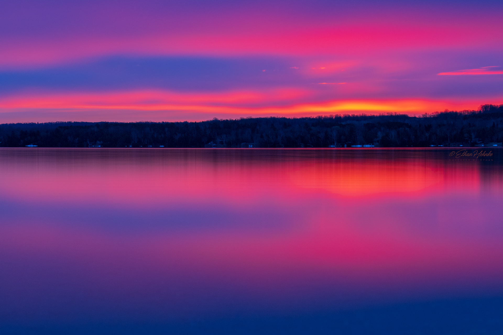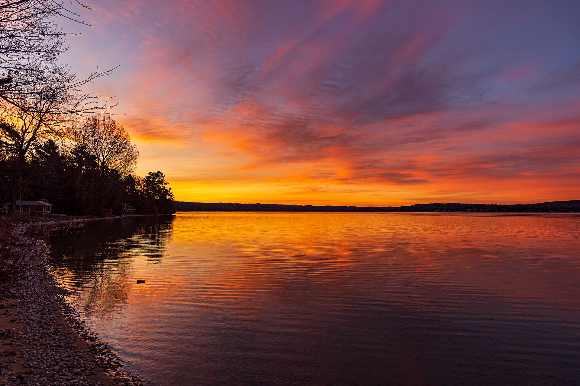 Reflective Sunrise over Lake Leelanau Narrows | November 20, 2023 | Canon R6, Canon RF 24-105mm at 24mm, Handheld | 1/100 second shutter speed, f/7.1, ISO 800