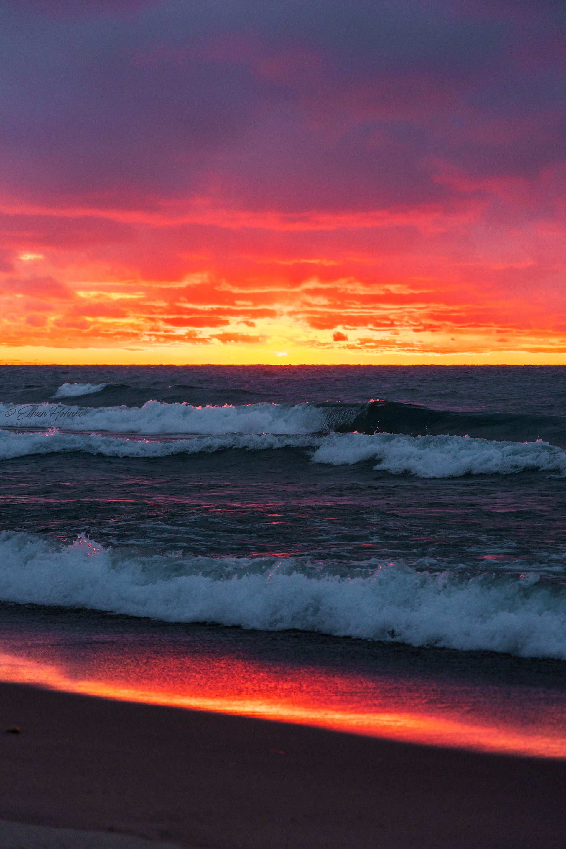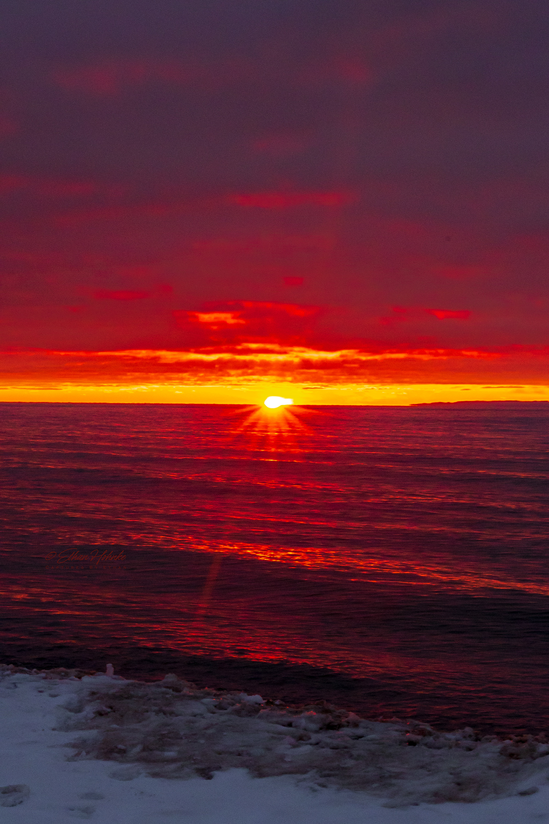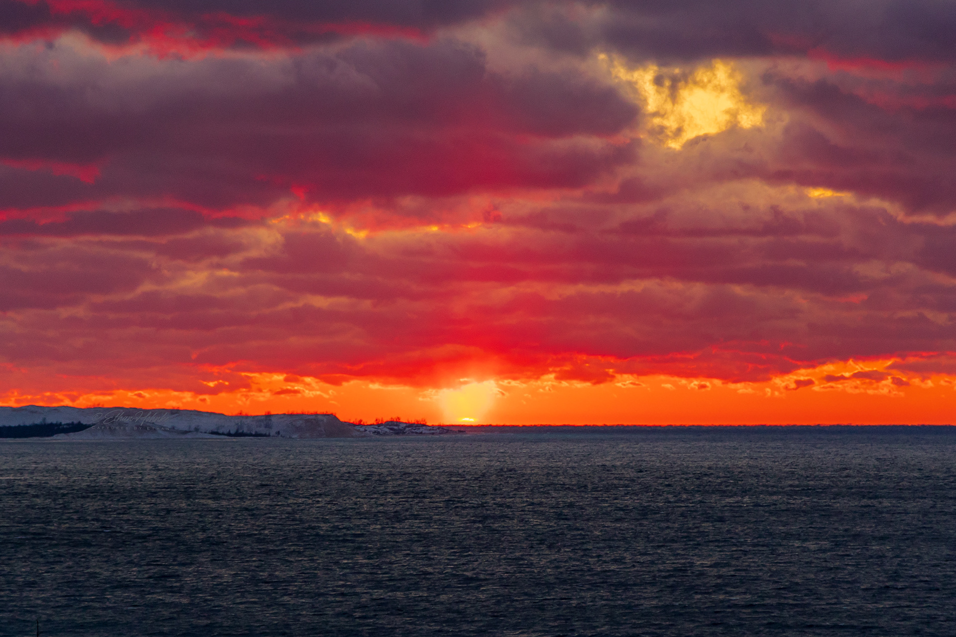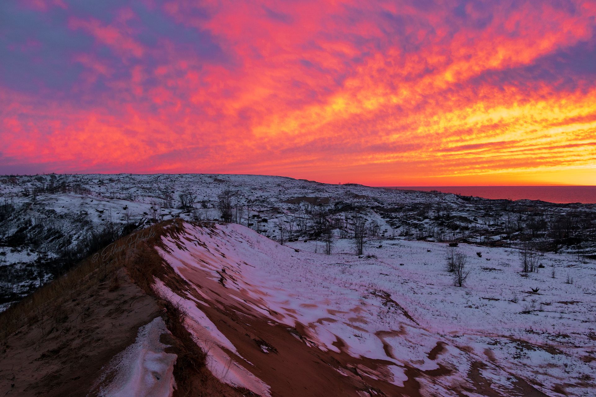 Sunset Color Explosion over Sleeping Bear Point | January 31, 2023 | Canon R6, Canon EF 18-135mm at 135mm, Handheld | 1/500 second shutter speed, f/5.6, ISO 1000