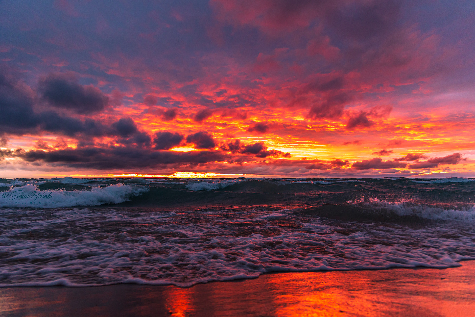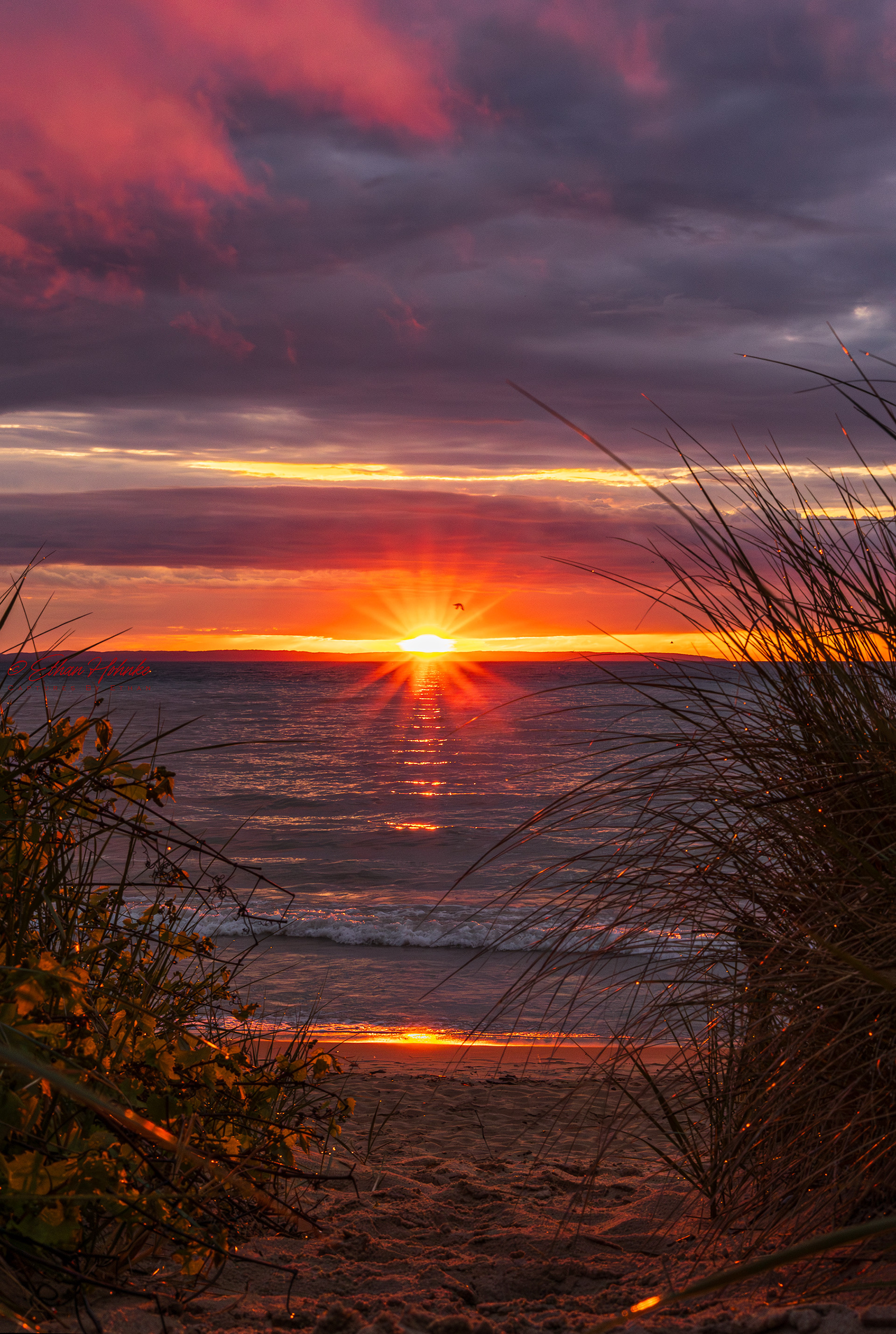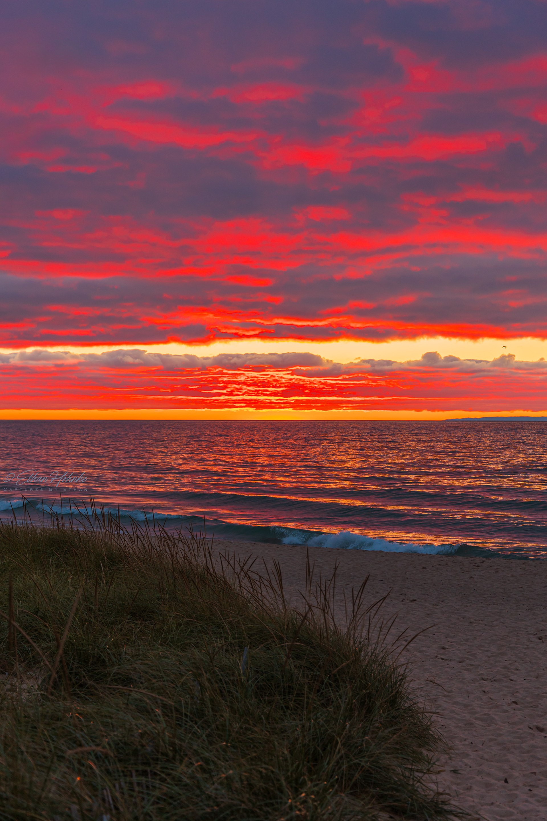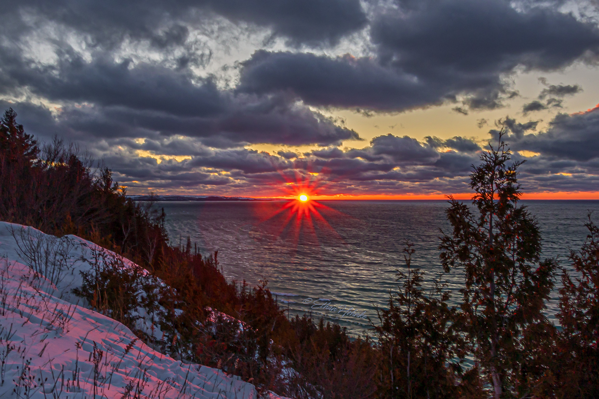 Sunset Color Explosion over Sleeping Bear Point | January 31, 2023 | Canon R6, Canon EF 18-135mm at 135mm, Handheld | 1/500 second shutter speed, f/5.6, ISO 1000
