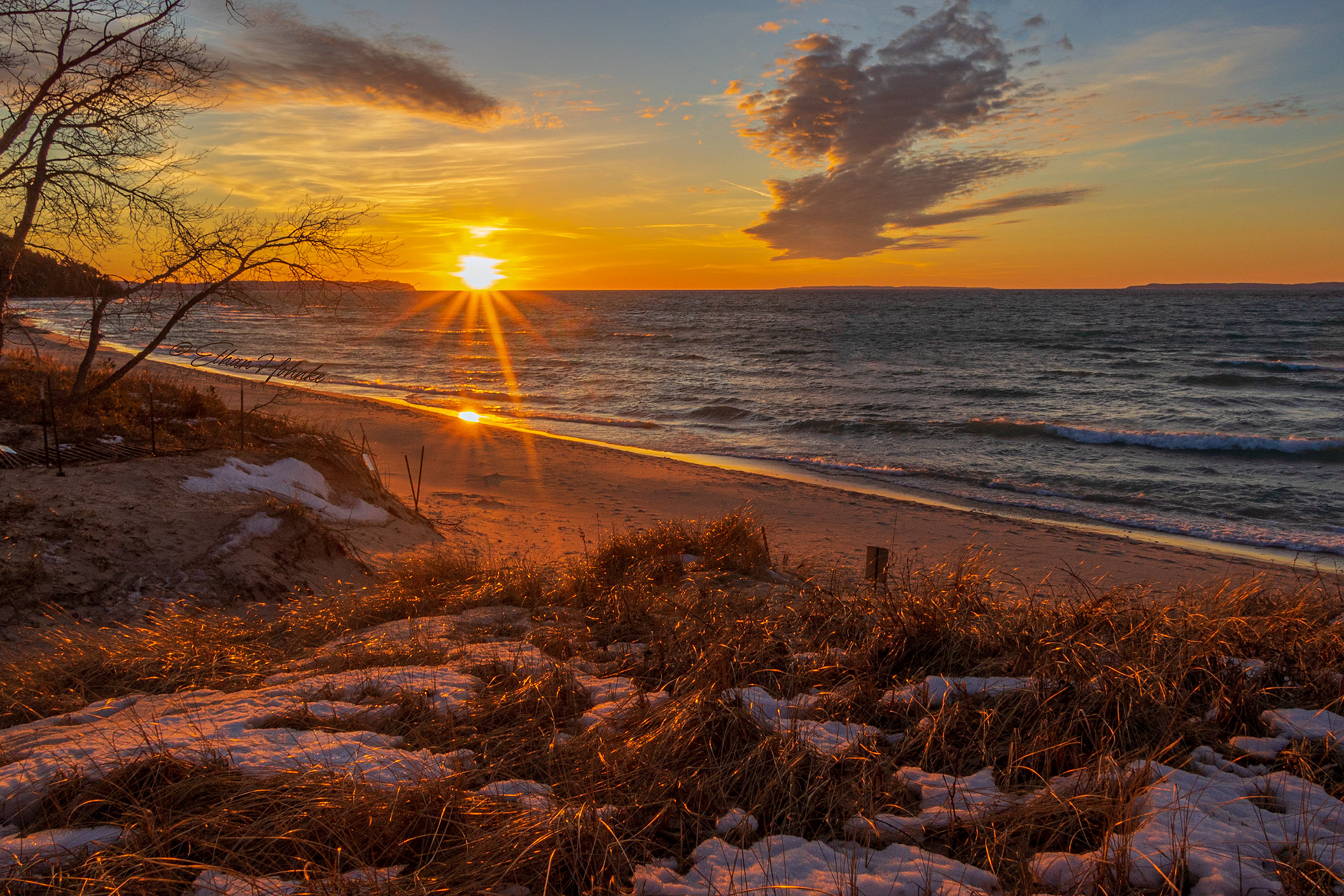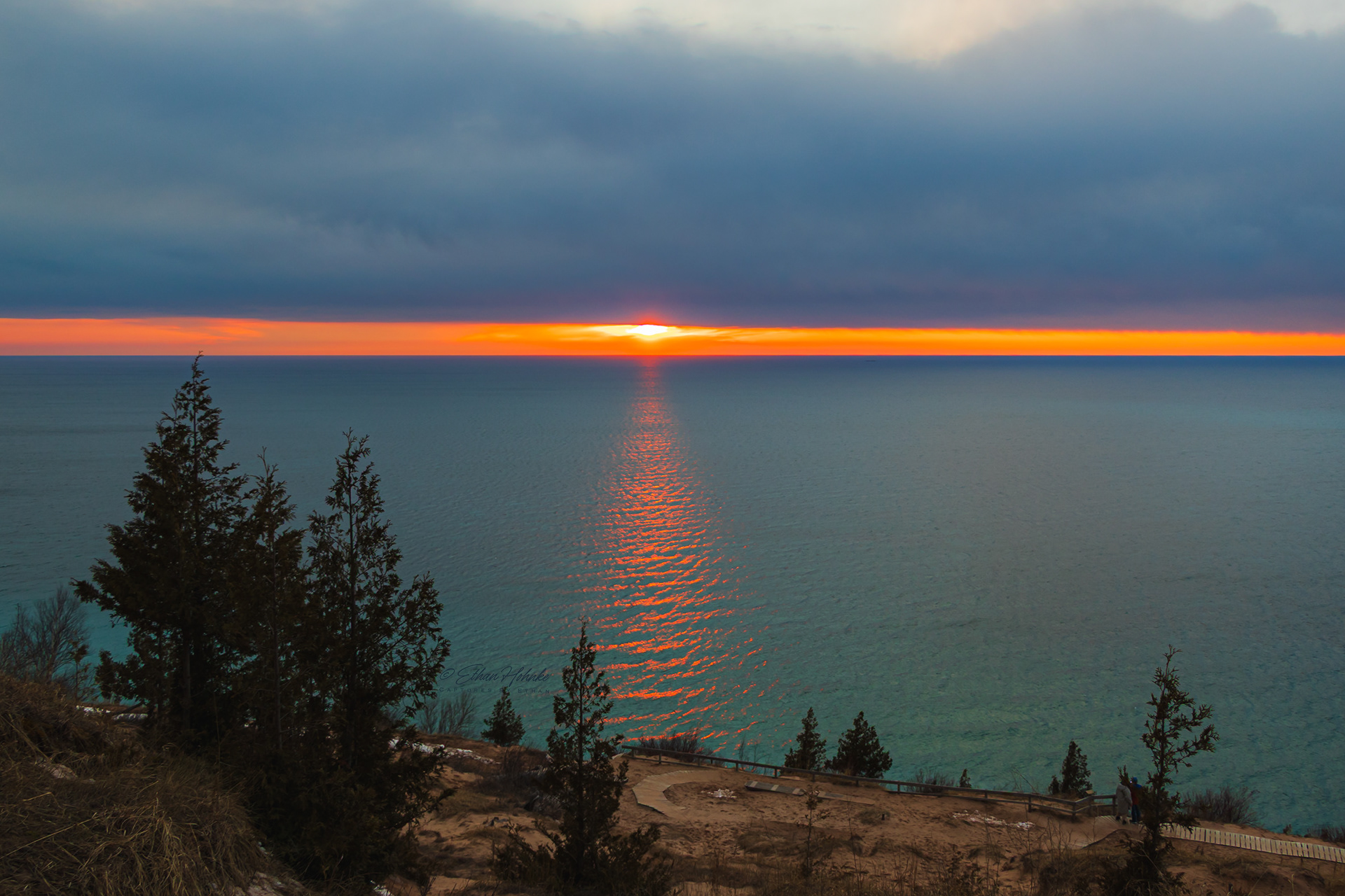 Sleeping Bear Dunes Sunset | January 31, 2023 | Canon R6, Canon EF 18-135mm at 18mm, Handheld | 1/25 second shutter speed, f/16, ISO 160