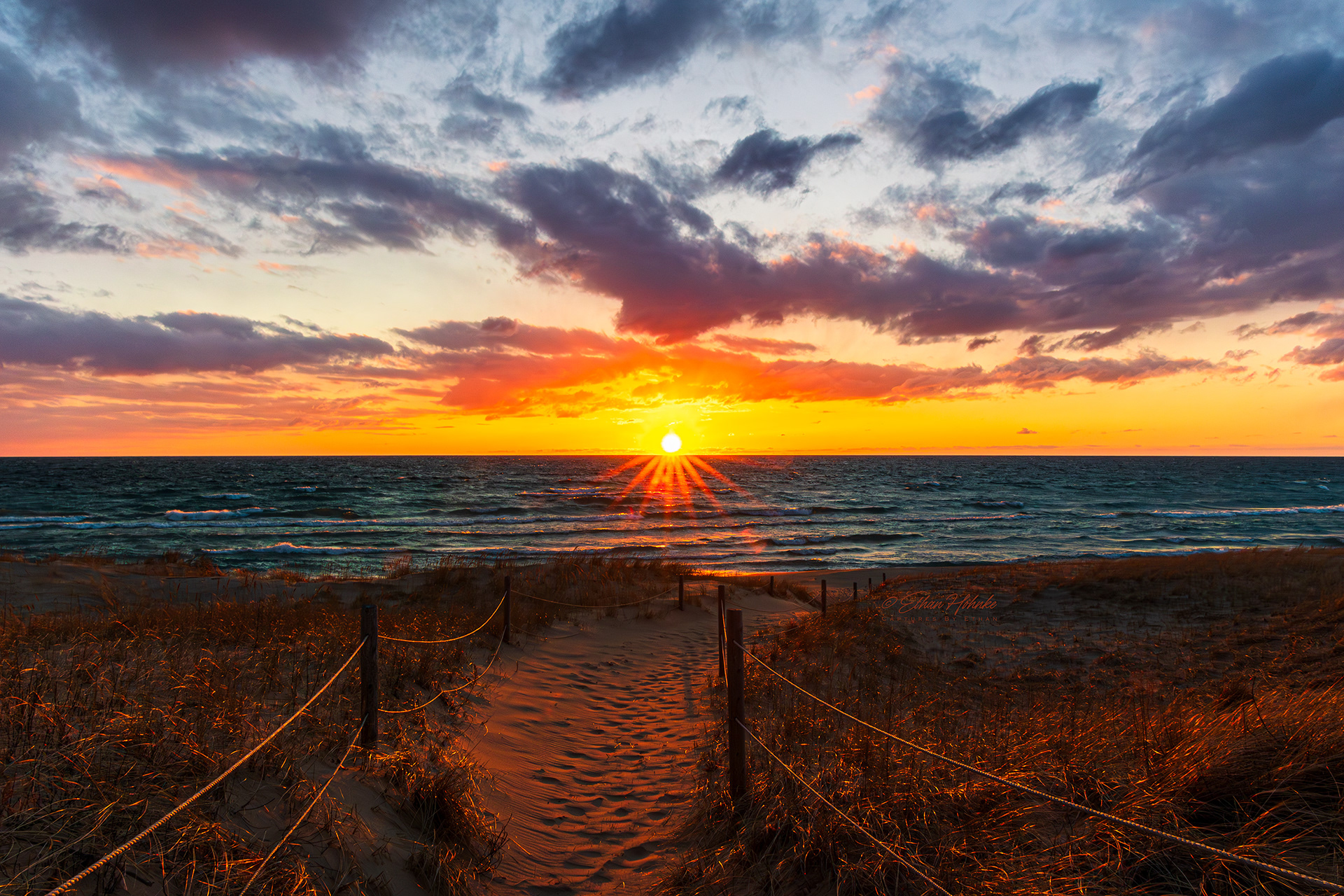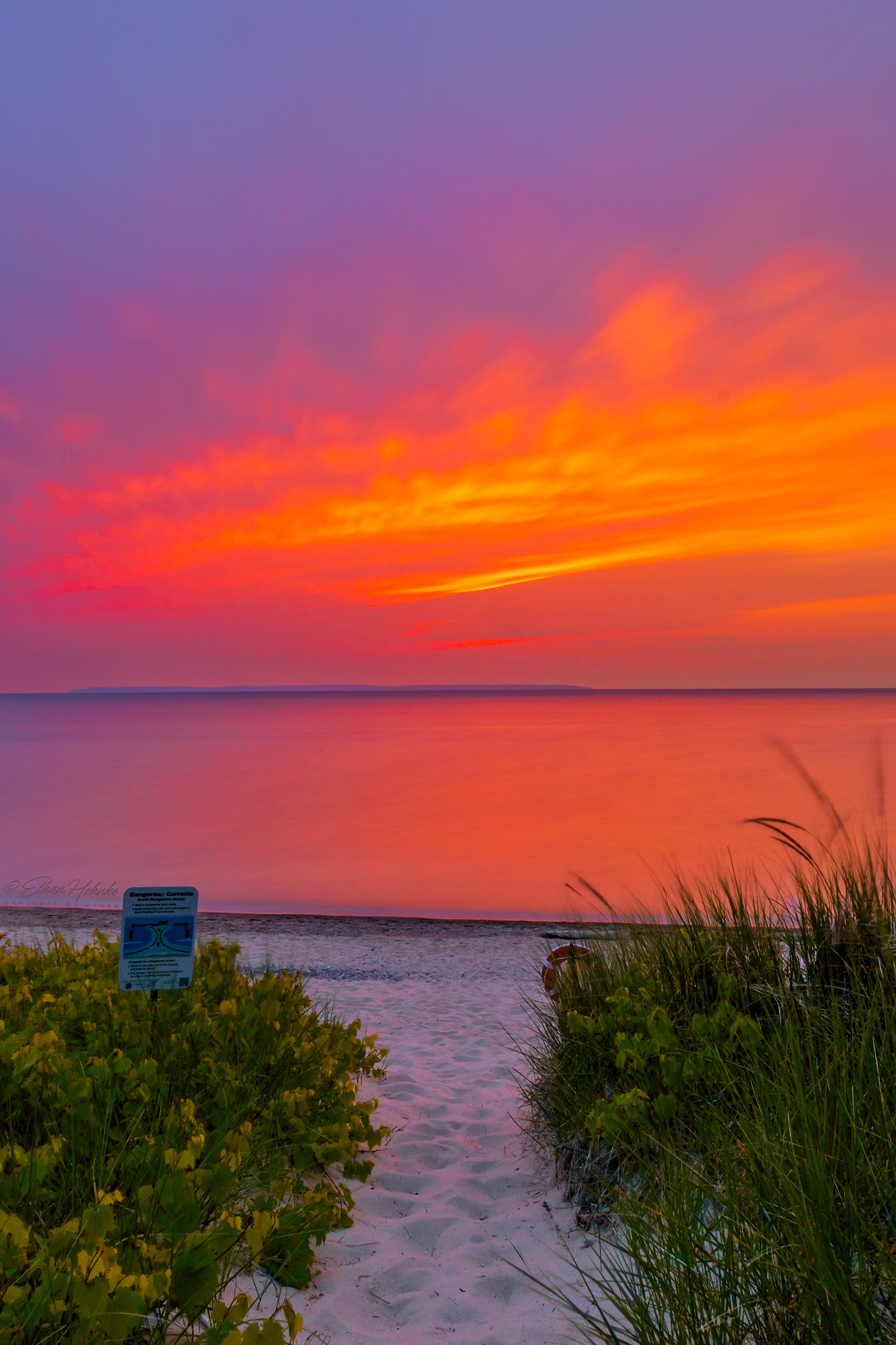 Beach Path Leads to Mesmerizing Sunset - Leland | July 5, 2024 | Canon R6, Canon RF 24-105mm at 65mm, Handheld | 1/500 second shutter speed, f/4, ISO 500