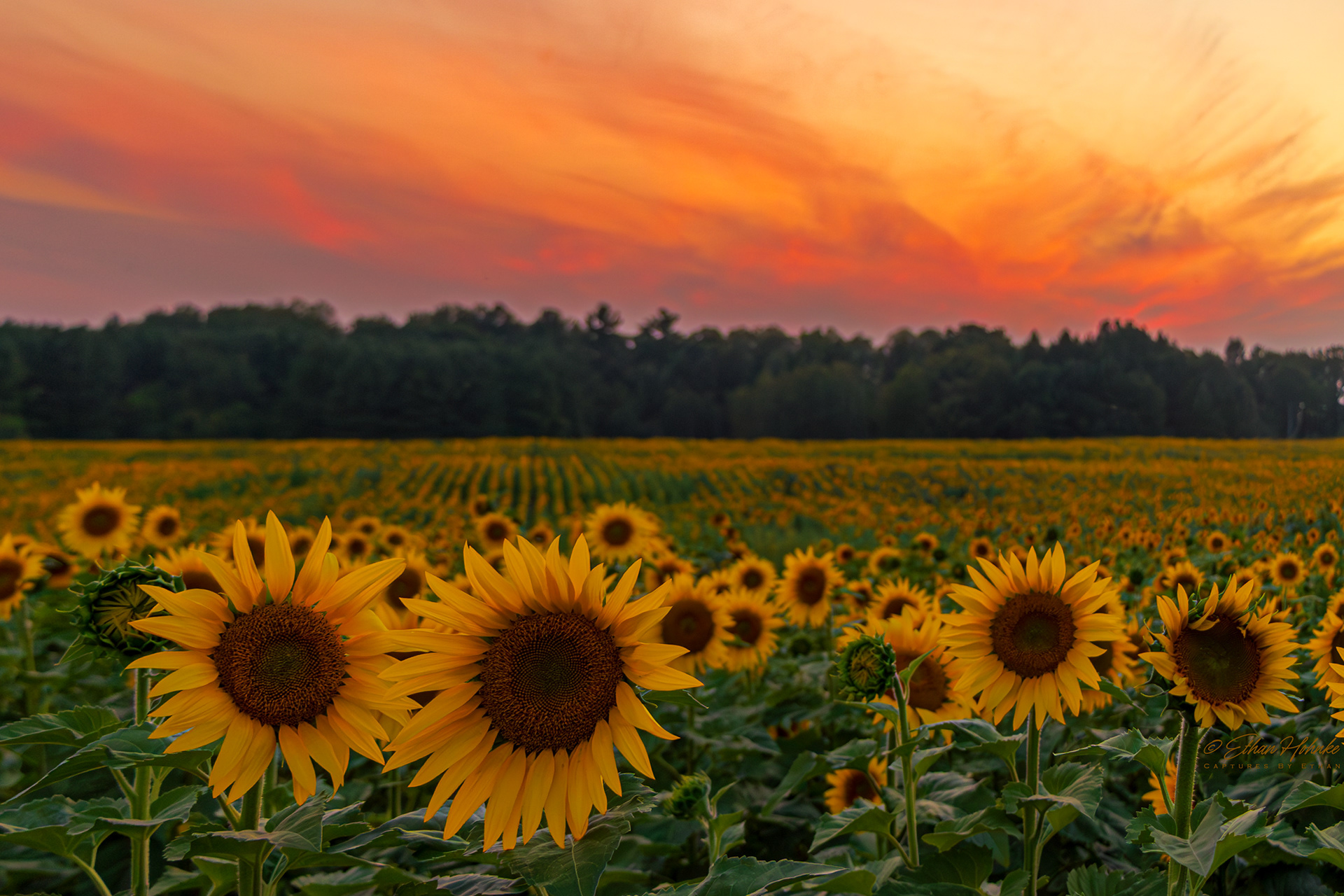 Sunflower Sunset at Maple Bay | August 5, 2023 | Canon R6, Canon EF 18-135mm at 29mm, Handheld | 1/100 second shutter speed, f/4, ISO 1600