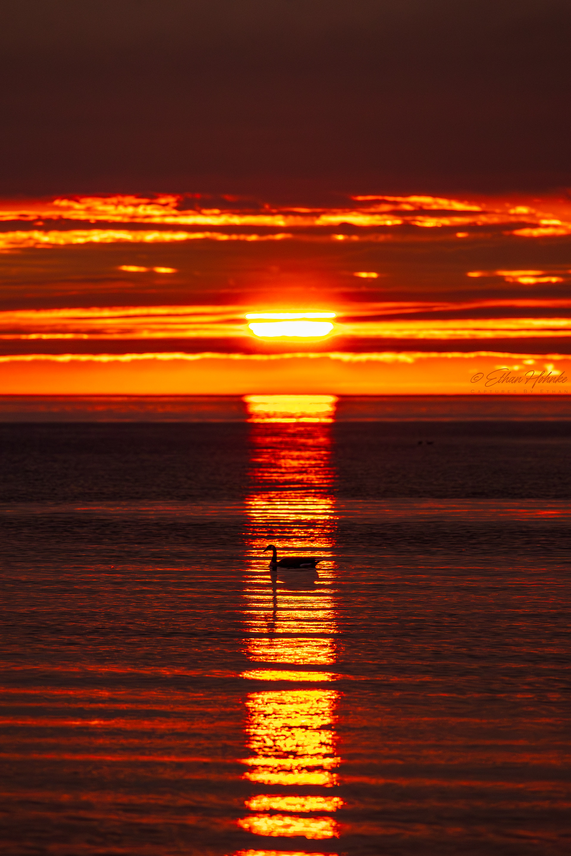 Spectacular Sunset over Lake Michigan from Leland | February 18, 2024 | Canon R6, Canon RF 24-105mm at 85mm, Handheld | 1/200 second shutter speed, f/4.5, ISO 1000